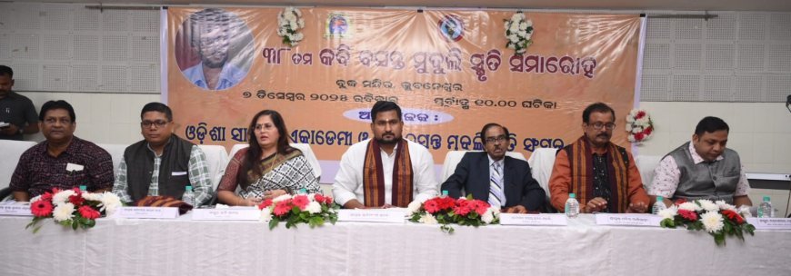 Baleswar, 8/12 (Krushna Kumar Mohanty): Basanta Muduli, known as a poet of love and rebellion, was not only a voice of vitality and life but also a blazing creative signature of human understanding. While he portrayed social distortions in his poems, he also remained devoted to the dream of a hopeful new dawn. This was highlighted by Surjya Banshi Suraj, Minister of Odia Language, Literature and Culture, while inaugurating the day-long 38th Basanta Muduli Memorial Ceremony. The event was jointly organised by the Odisha Sahitya Akademi and the Basanta Muduli Smruti Sansad, Bhadrak, at the Buddha Temple Auditorium in Bhubaneswar.