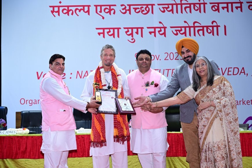 The International Astro Vastu Conference 2025 was held with great spiritual reverence and dignified presence at the National Institute of Ayurveda, Jaipur. The conference was organized under the guidance of Acharya Rajneesh Pandey, Founder of Shri Rishi Darshan Astrology Research Institute.