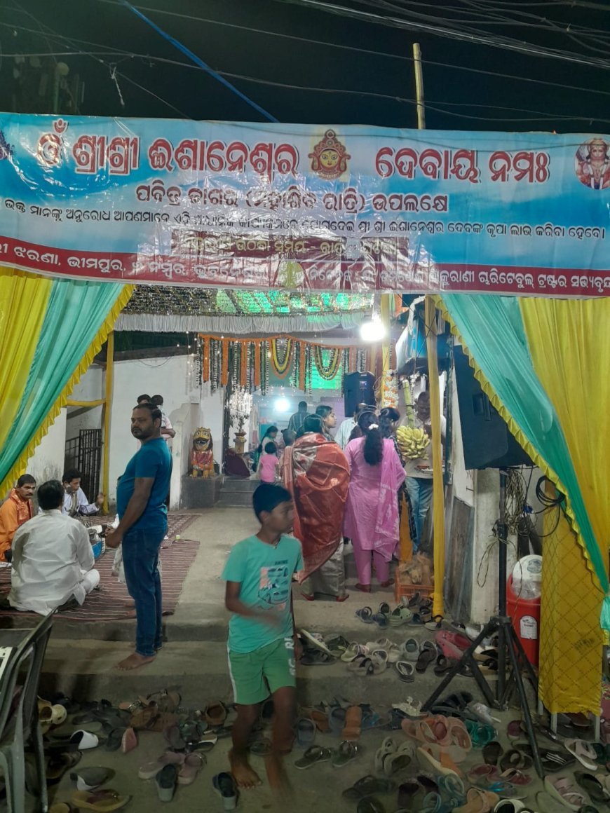 A large number of devotees gathered at Ishaneswar Mandir, Bhimapur, Unit-6, where the temple premises were beautifully decorated with flowers and illumination.